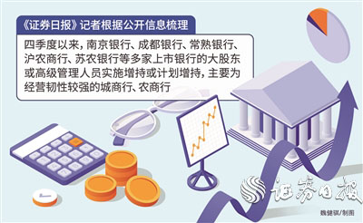 成都银行当晚还公布了增持计划的进展情况。该行两大股东增持成都银行股份约34,247,000股。 《证券日报》记者整理公开信息发现,四季度以来,南京银行、成都银行、常熟银行、上海农商银行、苏融银行等多家上市银行大股东及高管均增持或计划增持股份。主要是城市商业银行和区域性商业银行经营韧性较强的商业银行。